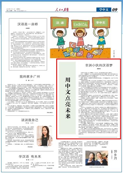 深造,攻读经济学或者国际关系等领域的研究生。对于未来,韩懋宇不忘初心,“我会学好汉语和专业知识,让更多人了解中国和尼日利亚,让更多人听到中尼两国的声音,了解两国的故事,为中尼两国的友谊与合作贡献出自己的力量。”韩懋宇说。