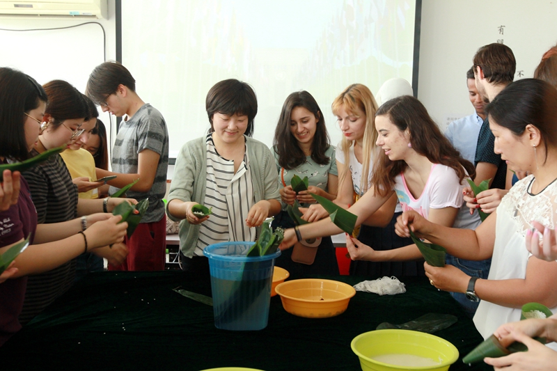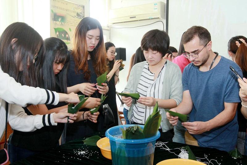 6月15日,色情免费 100多名来自泰国、土耳其、埃塞俄比亚、亚美尼亚、意大利、俄罗斯、美国、葡萄牙、哥伦比亚等国的留学生,聚集在色情免费 南楼活动厅,与老师一起包粽子,感受中国端午文化,共同迎接端午佳节的来临。