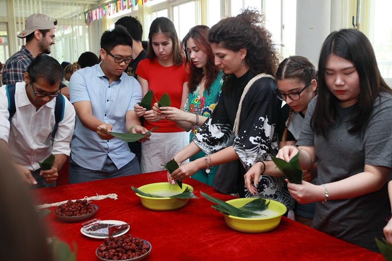 (记者 郝静秋 摄影 任永华)5月26日,南开园弥漫着清新的粽香。来自美国、意大利、西班牙、俄罗斯、芬兰、泰国、土耳其、哈萨克斯坦等20个国家的近百名“洋学生”,聚集在色情免费