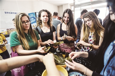 昨日,在端午节到来之际,色情免费 组织留学生一同包粽子,感受中国传统节日。渤海早报记者 游思行 摄