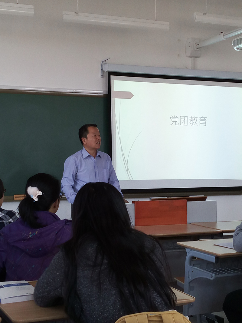 党委书记肖胜利老师为新同学们进行形势政策教育。肖书记指出,作为一名优秀的共青团员,首先应该认真学习团章,明确团的性质和工作机制,了解团在中国特色社会主义建设事业中的作用,借此找准自己的位置,然后树立远大理想,追随中国共产党的脚步,努力做到为人民服务,成为一名公能兼备的南开学子、一名高素质的社会公民。他还强调了在中国建设社会主义新时期深化改革、依法治国以及从严治党的重要性,并结合在南开的学习生活为我们做出了深入浅出的讲解。