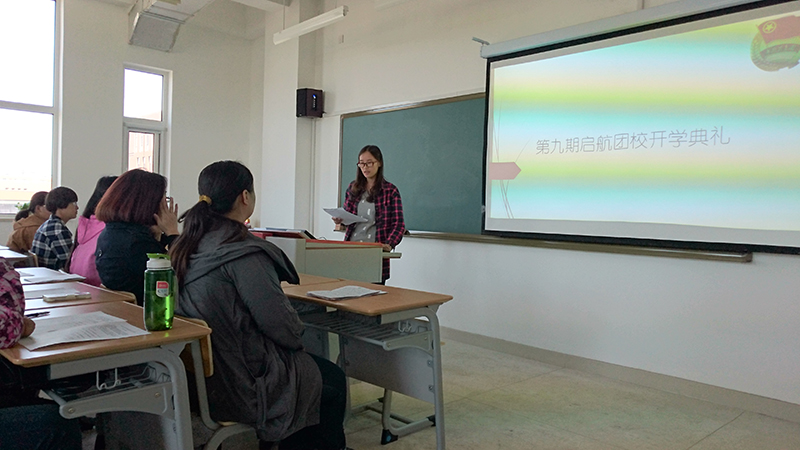 在所有在场同学庄严诵唱《共青团团歌》之后,学院团委书记胡颖欣老师发表了对新同学们的开学寄语,胡老师强调,团校是一个为所有成员提供交流合作渠道和社会实践机会的平台,在团校中大家应当共同成长进步,提高精神境界。每一位成员都应该积极地参与到团校活动中去,并为活动出谋划策,实现能力的提高。