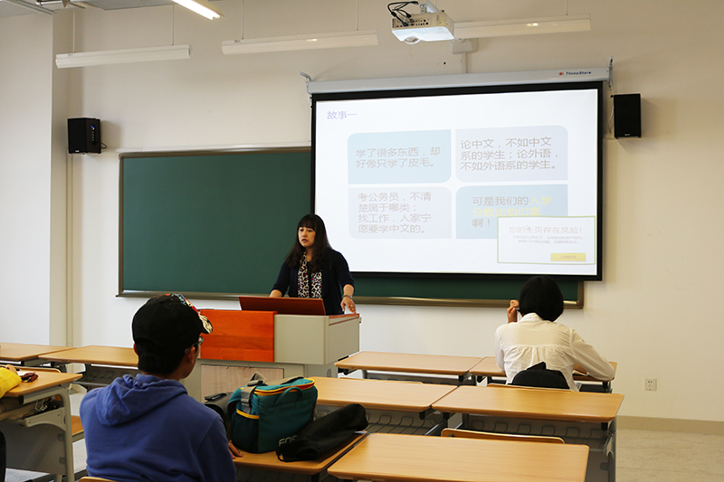 梁晓萍老师通过一个简短故事引出了三个问题,并希望同学们加以思考。第一,为何要设置新专业。第二,汉语国际教育专业的长处是什么。第三,大学教育应赋予学生什么。梁老师解答道,通过这三个问题,可以了解到现在社会对人才知识结构的需求是多样化的,同学们应该仔细思考自己所处专业的优势,并在大学努力提高自己,开阔眼界,形成思辨的习惯。