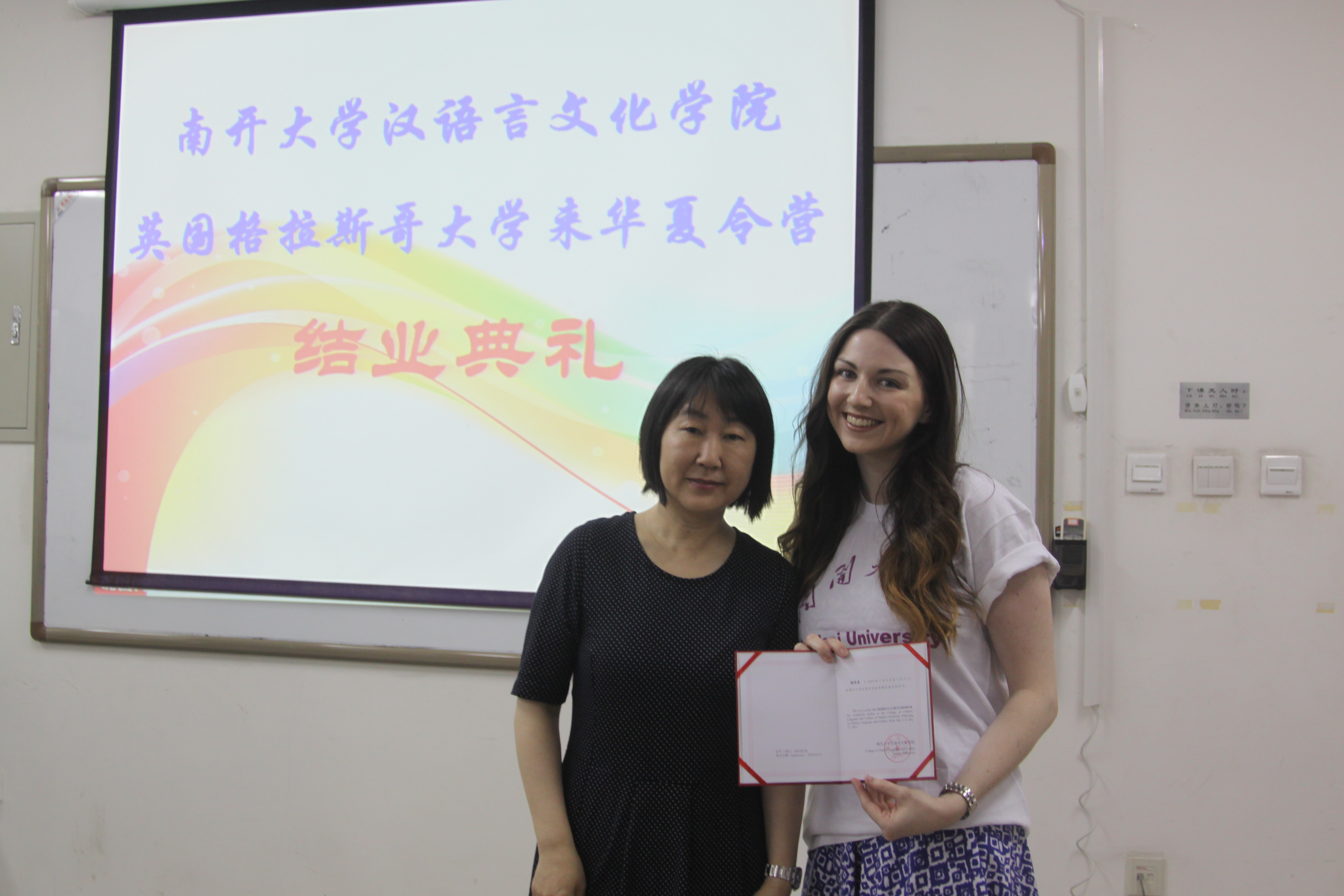 最后,梁晓萍和李莉为全体留学生颁发结业证书,全体师生一同合影留念,2015年格拉斯哥大学来华夏令营圆满落下帷幕。