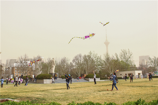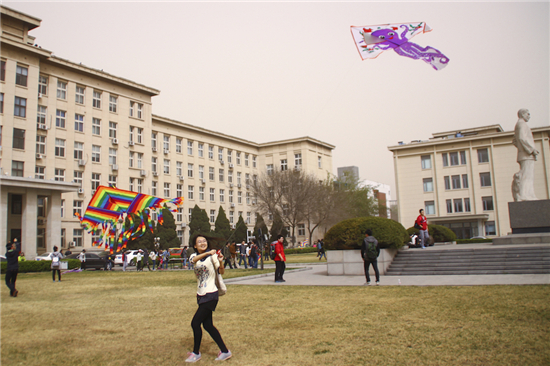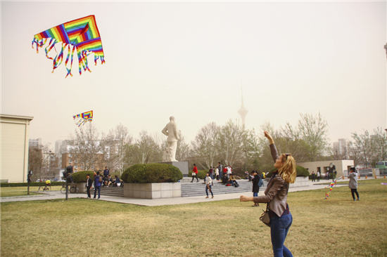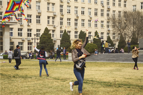 各学院的中外大学生一起手牵纸鸢,放飞心情,感受中华传统文化的迷人魅力。