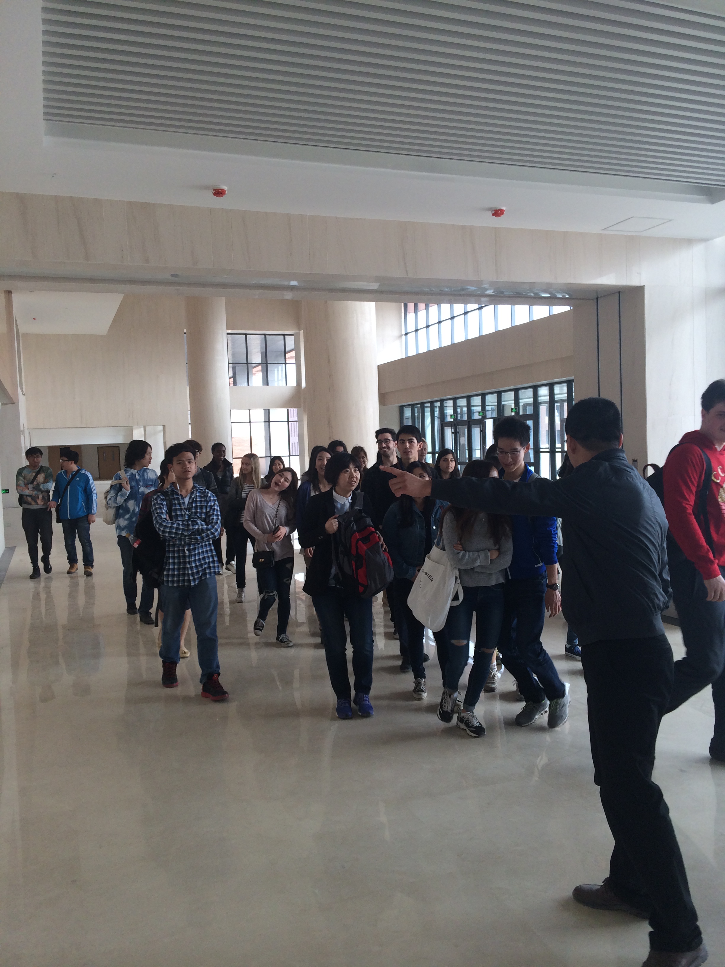 认真听取相关负责人的讲解后,同学们跟随工作人员进入已经基本竣工的图书馆内部参观。进入图书馆后,留学生们被考究的内部装潢、开放的空间格局和人性化的设计理念所叹服,不时与同伴、老师和工作人员交流,分享自己的体会。