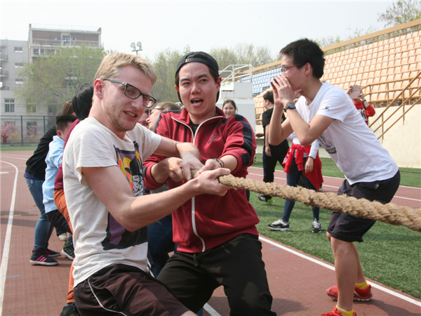 举行留学生运动会。在“悟空”与“功夫熊猫”的“带领”下,来自美国、德国、俄罗斯、意大利、日本、韩国等50几个国家600多名留学生在运动场上体验了浓浓的“中国味”。