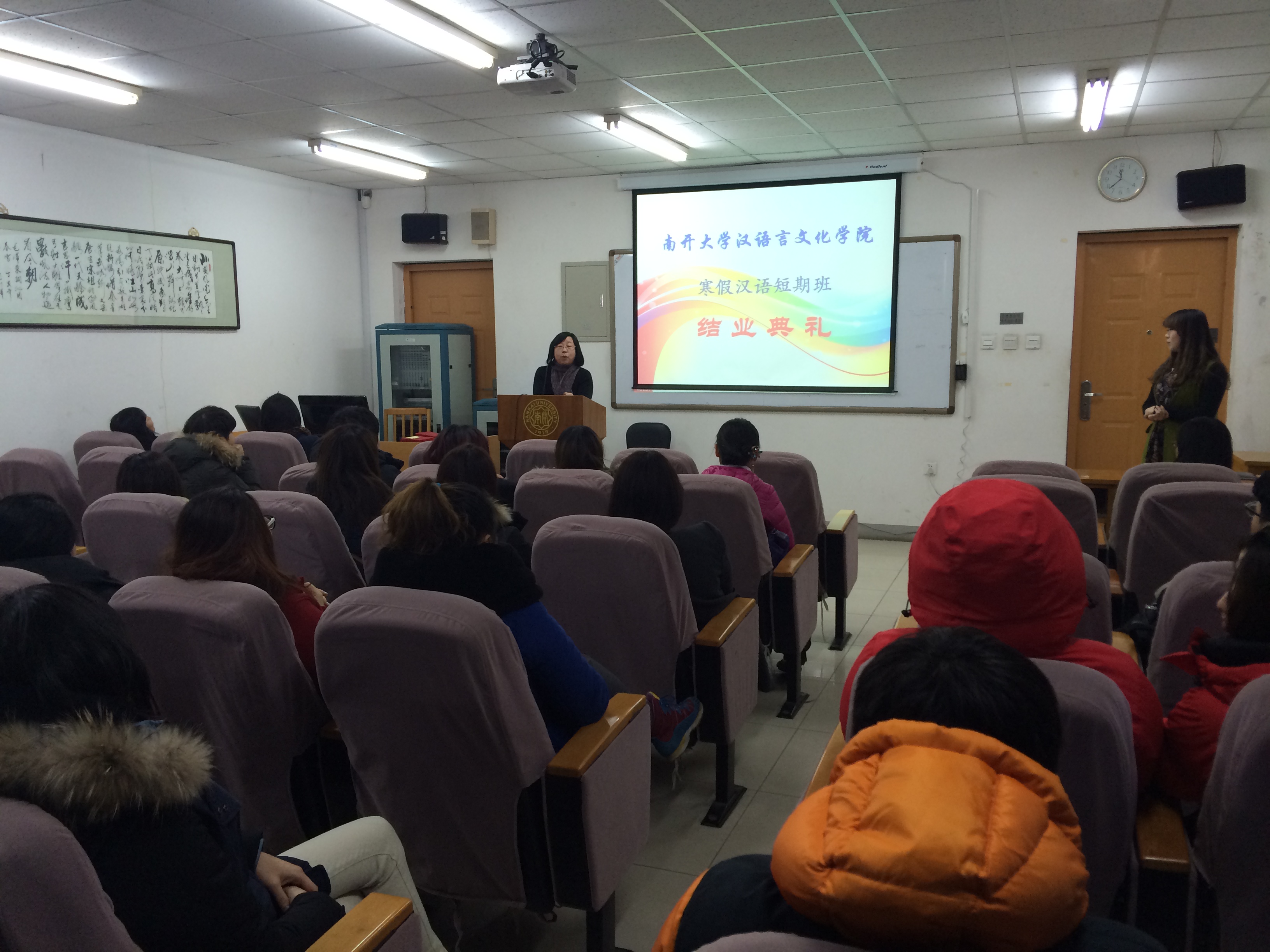 举行寒假汉语短期班结业典礼。来自日、韩等国的短期班留学生和全体任课教师参加,学院教学办公室和招生办公室的负责人出席。结业典礼由招生办公室孙伟主持。