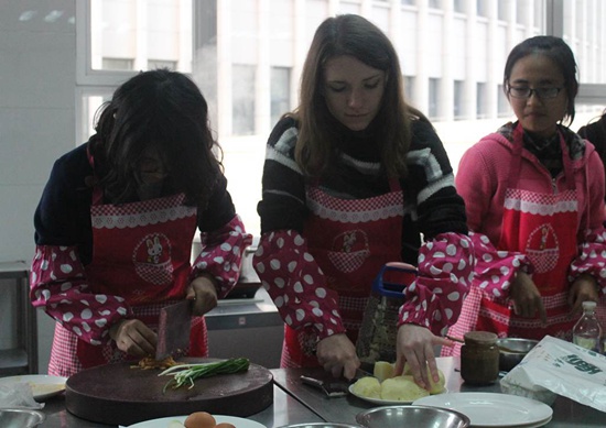 南开新闻网讯(实习记者 郝静秋 摄影报道)11月7日,来自乌克兰、泰国、老挝、日本、韩国、中国等6个国家的50余名南开学子走出校园,来到天津市中华职业中等专业学校的烹饪实训室,大家纷纷亮出自己的拿手好菜,比拼厨艺,分享美食,拉近距离。最终,中国菜“满城尽带黄金甲”力压对手,成为师生最受青睐的菜品。