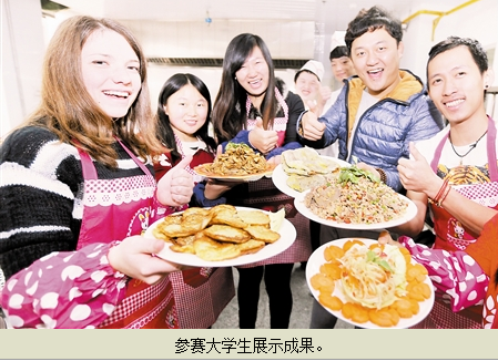 和平区中华职专烹饪实训室昨日迎来一场六国美食大战,来自中国、乌克兰、泰国、老挝、韩国、日本的50余名南大学生分组配合,推出韩国炒年糕、日本味噌汤、乌克兰土豆饼、天津煎饼果子、武汉热干面等风味美食,中外学子在厨房交响曲中加深了了解和友谊。 本报记者 王晓明 实习生 张美康 摄
