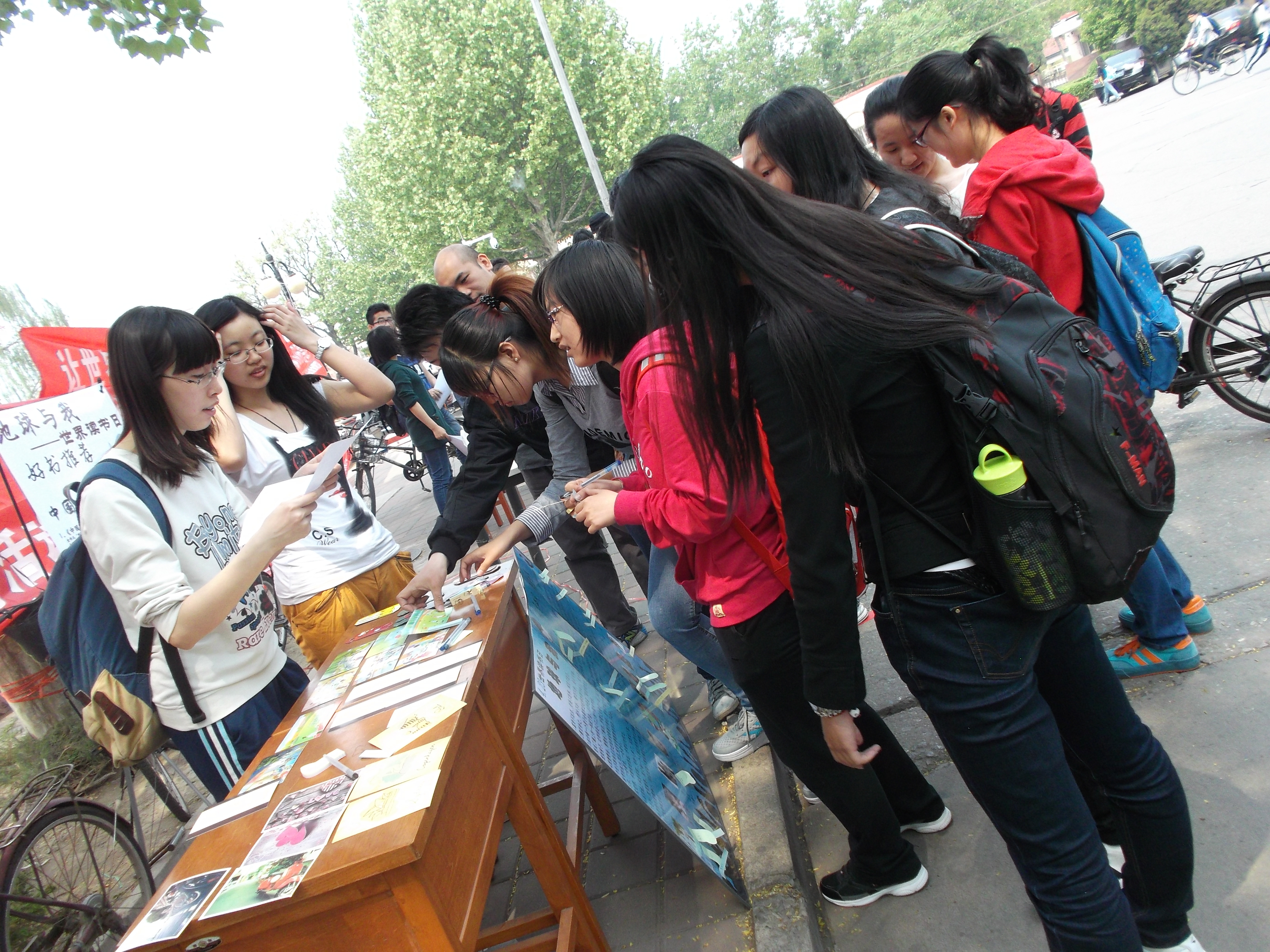 相关负责学生在学校二食桥头设立宣传展台,结合今年世界读书日“地球与我”的主题开展“阅于我心,读行世界”的读书活动。读书活动关注于经典作品,精心挑选了数本中外经典作品作为推荐书目;并进行经典语段的回顾,要求前来参加活动的学生回答出经典语段、经典人物形象的出处和作者。很多学生参加完活动后还继续查找经典作品的相关信息,以求获得更多的了解、加深印象、重返经典。