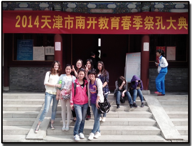 上午10时,“祭孔大典”正式开始,汉院师生在天津文庙博物馆负责人员的指导下祭奠至圣先师孔子,在韶乐的背景之下,主、陪祭官向至圣先师孔子献三献礼。乐曲演奏《宣平之章》,舞生开始跳六佾舞。祭孔大典以歌颂孔子生前的业绩为主,将礼、乐、歌、舞巧妙融合。