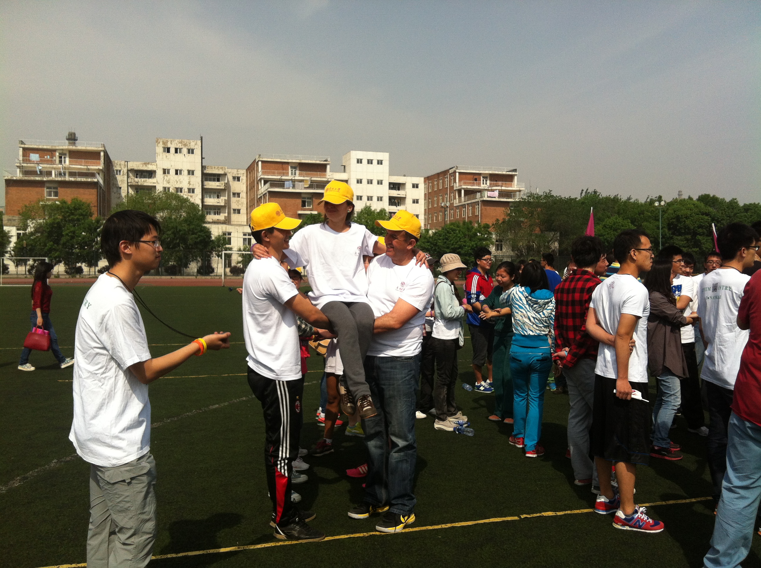 组织部分2014届毕业留学生参加学校毕业生趣味运动会。