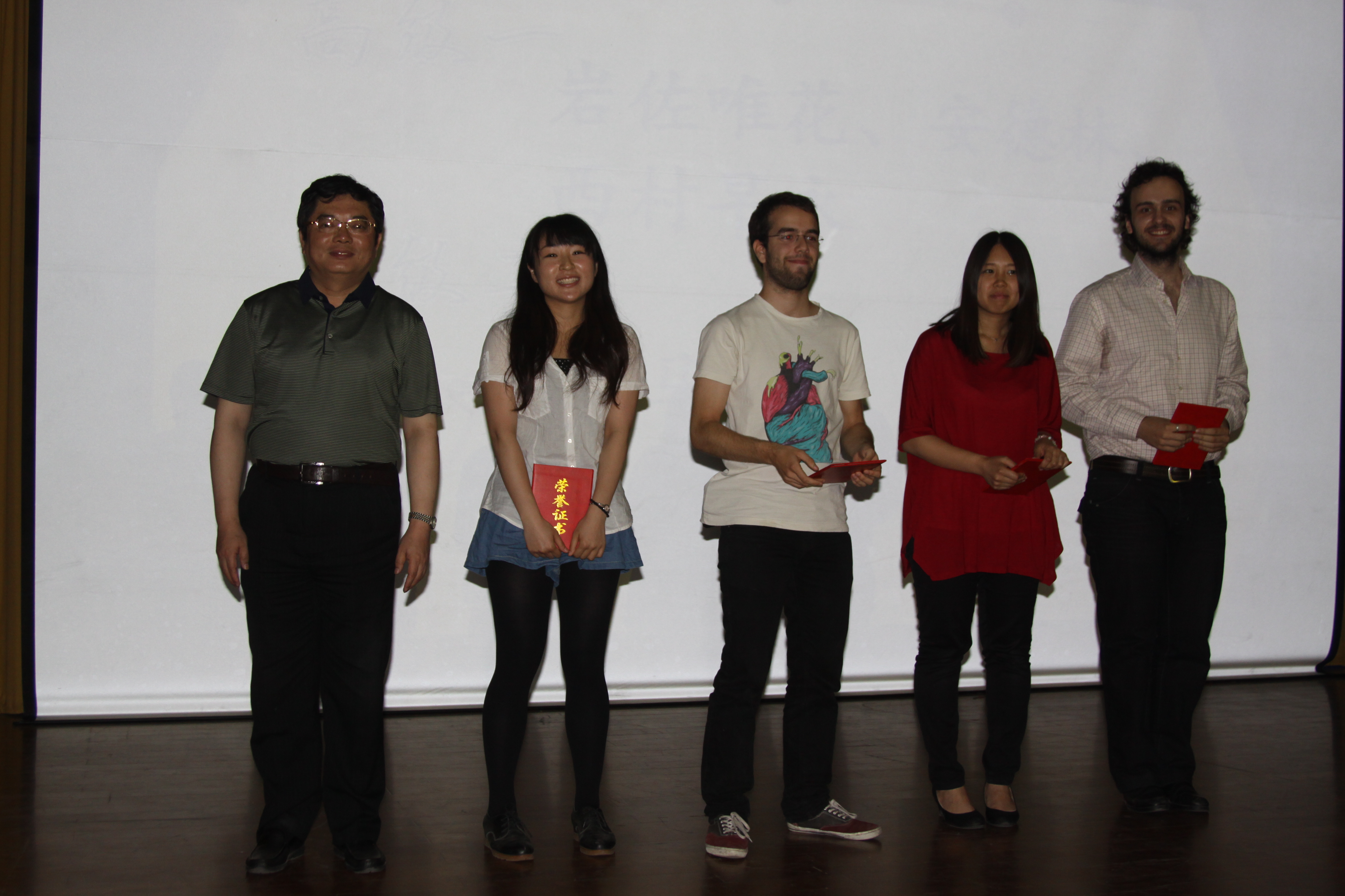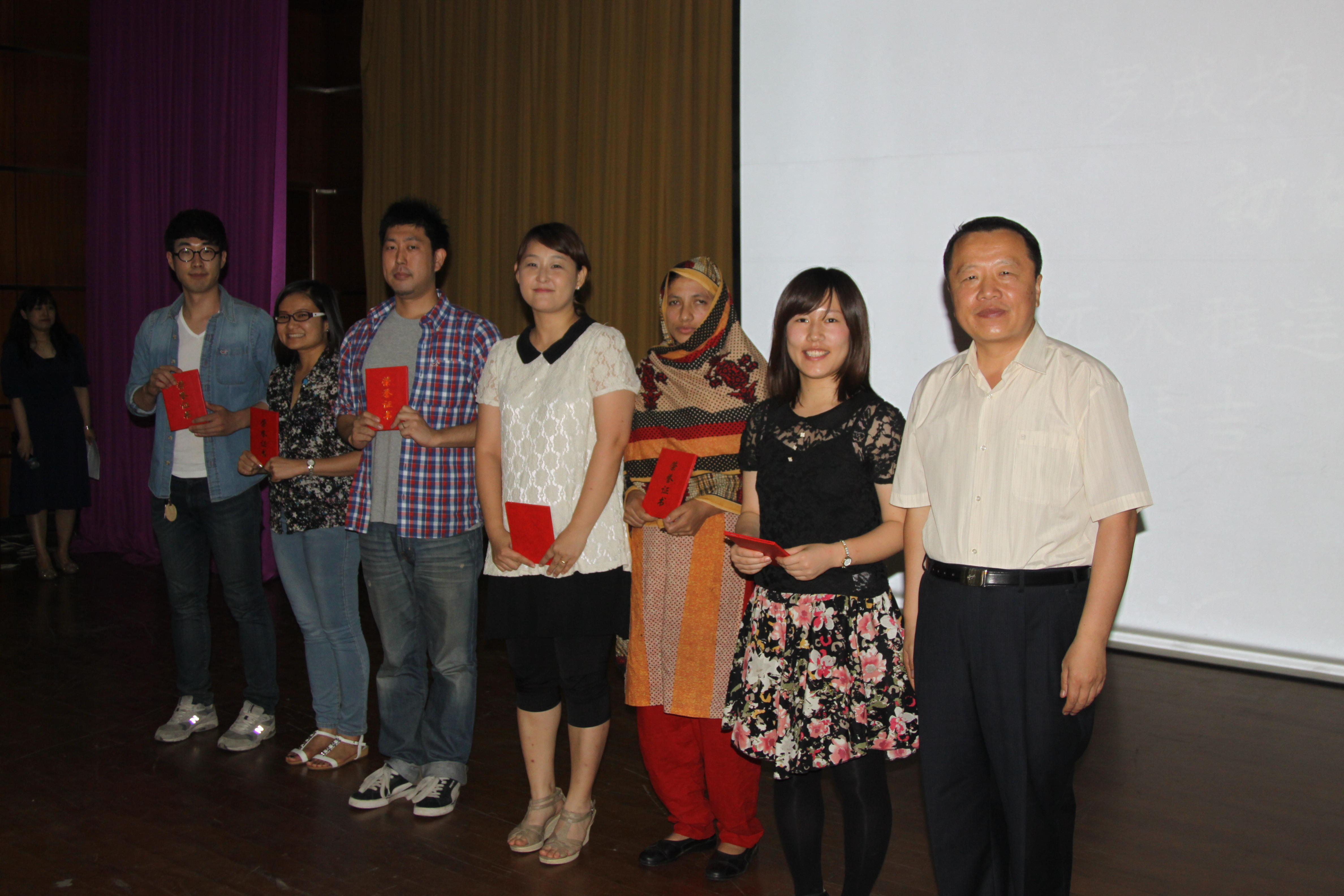 (通讯员:孙伟 陈玉娴)6月6号下午,“色情免费 进修生结业典礼暨表彰大会”在色情免费 主楼小礼堂举行。色情免费 院长王立新、党委书记肖胜利、副院长刘春兰出席,进修部全体师生参加了本次大会。 大会在各班级的展示视频中拉开了帷幕。大屏幕上生动的一幕幕,记录了同学们在南开的点点滴滴,有的令人感动,有的令人捧腹。与会领导、师生一同观看完展示视频后,王立新院长代表学院向本学期结业的进修生致辞。王立新在致辞中表示,大家在色情免费 都度过了快乐而充实的时光。在南开大家结识了来自世界各地的朋友,和优秀的南开学子建立了深厚的友谊。祝愿大家带着在南开的收获取得更大的进步。 随后,副院长刘春兰宣读了本学期表彰决定,学院领导分别为获奖的学生颁发了证书和奖品。经过评选,李瑟吉、刘博洋、乐奥列等46位同学分别获得优秀学生奖、全勤奖和优秀班长奖,中级1班的吴日同学因进步显著获得了“特别进步奖”。此外,大会还为“汉字英雄大会”的获奖选手及组织教师颁发了奖项。李瑟吉同学代表获奖学生发言时说,刚来中国时她只会说“你好”,现在她已经可以和中国人交流了,这离不开老师和朋友们的帮助,这段记忆对她而言,是甜蜜而闪光的。 表彰结束后,各班同学们还进行了汇报演出。有深情的《愿得一人心》《我想大声告诉你》;有动感的《我们想rock你》和街舞表演;有欢乐的歌舞《改变自己》、《wowonini》;有洋溢着青春气息的《奔跑》、《青春纪念册》,也有充满中国风的《卷珠帘》《时间都去哪儿了》;最后在幽默的小品《十年后我们再相聚》中,大会圆满落下帷幕。