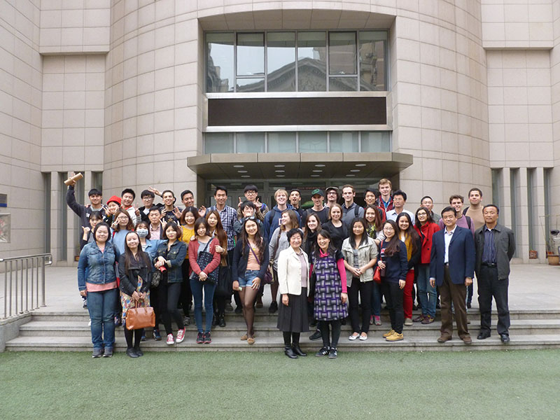 随后,留学生分为四个小组,在领队教师的带领下,分别在餐厅、银行、酒吧和茶艺室 四个实训教室与实践基地的中国学生进行场景交流。中外学生在交流活动中,增进了了解、锻炼了语言技能,加深了友谊。临别之际,中外学生用中英文合唱一首《友谊地久天长》,体验活动圆满落下帷幕。