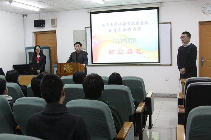院长王立新、学院教学办公室负责人、短期班任课教师及招生办公室的相关负责人出席,来自日本立命馆大学的10留学生参加结业典礼。
