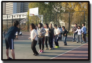 趣味运动会分为五个项目——“健身球接力”、“无敌风火轮”、“盲人搬家”、“三人四足”、集体跳绳。23名中国学生和24名日本留学生分为7个小组,就以上多个融趣味性与竞争性为一体的项目进行角逐。在班导师的组织和指导下,中外学生有序开展各个运动项目,在合作和竞争中中外学生建立了相互信任和友谊。