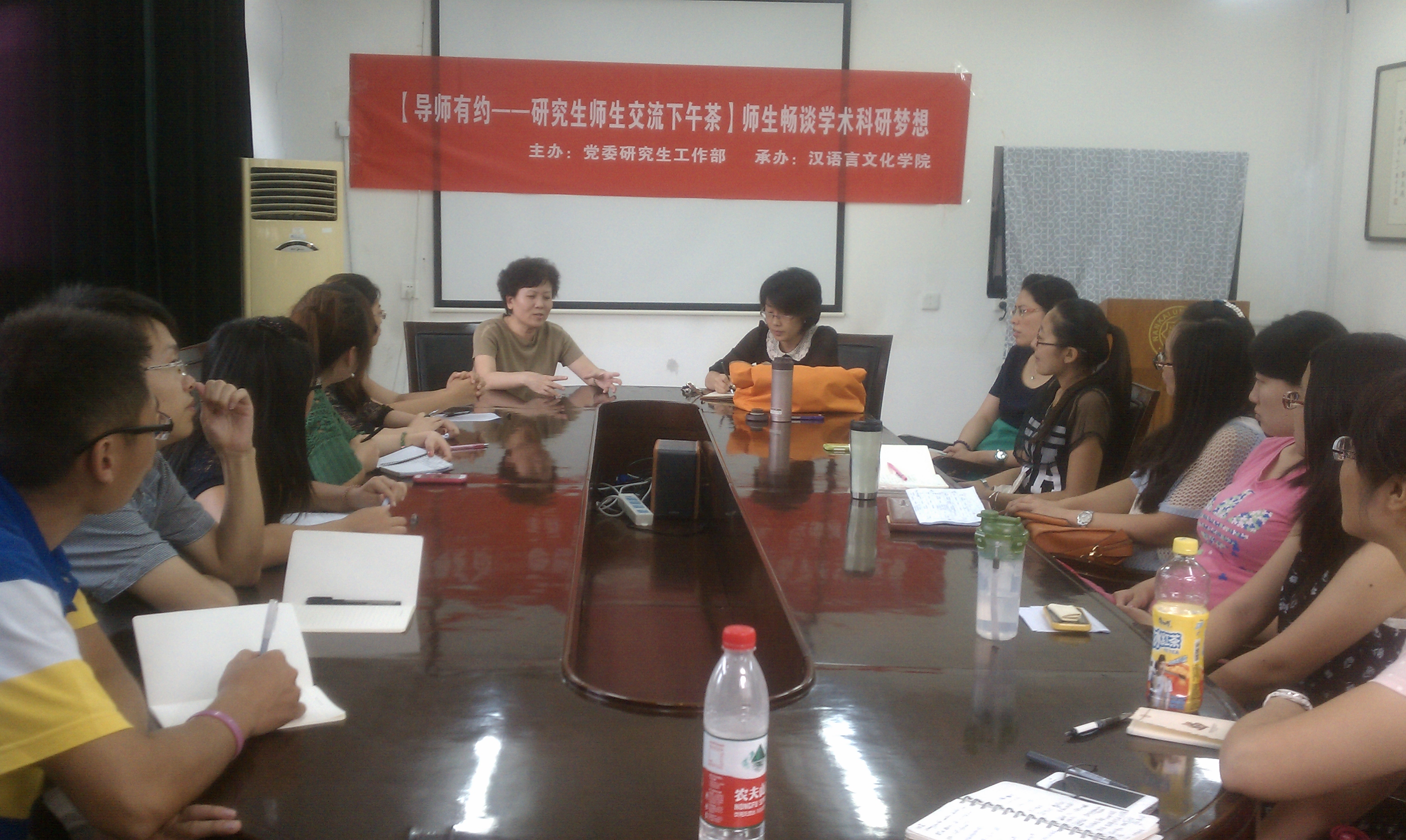 为2013级硕士新生举办了“导师有约——研究生交流下午茶:师生畅谈学术科研梦想”活动。学院副院长党委副书记王坚、研究生部主任2013级汉语国际教育专业硕士班班导师祖晓梅,以及2013级语言学及应用语言学硕士班班导师刘佳出席了本次活动。学院2013级硕士新生代表参加了本次活动。