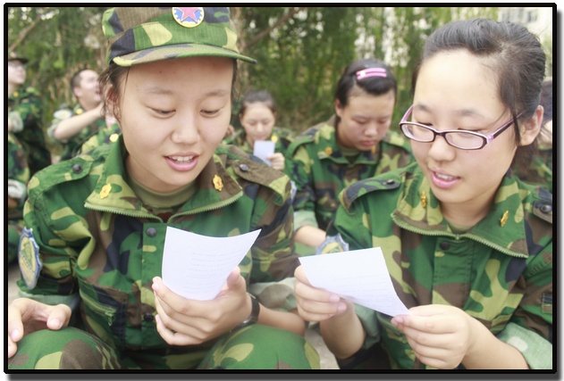 晚上7点后,教官会教新生们学习军歌,时不时地还会带着新生们和其他连队比拼“唱功”,这时候的新生们总会忘记一天军训的疲惫,用最饱满昂扬的歌声显示自己连队的气势。另外一件让新生们精神抖擞的事是让教官们互相“比划比划”,不过作为有着多年经验的教官,总是能把话题岔开。很多新生都说他们在这样的氛围中,有了更多了解教官以及互相了解的机会,加深了彼此间的友谊,使连队有了更强的凝聚力。