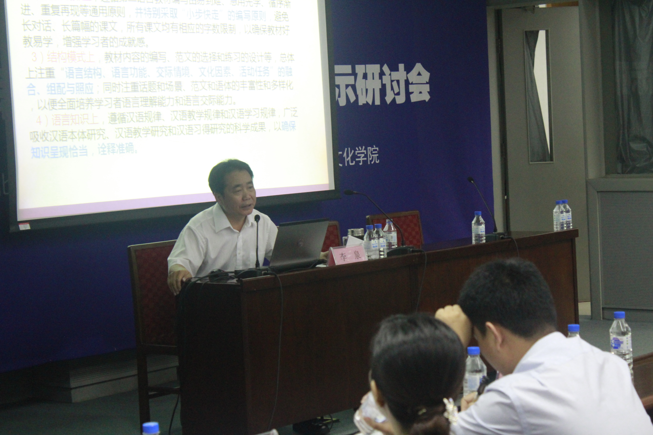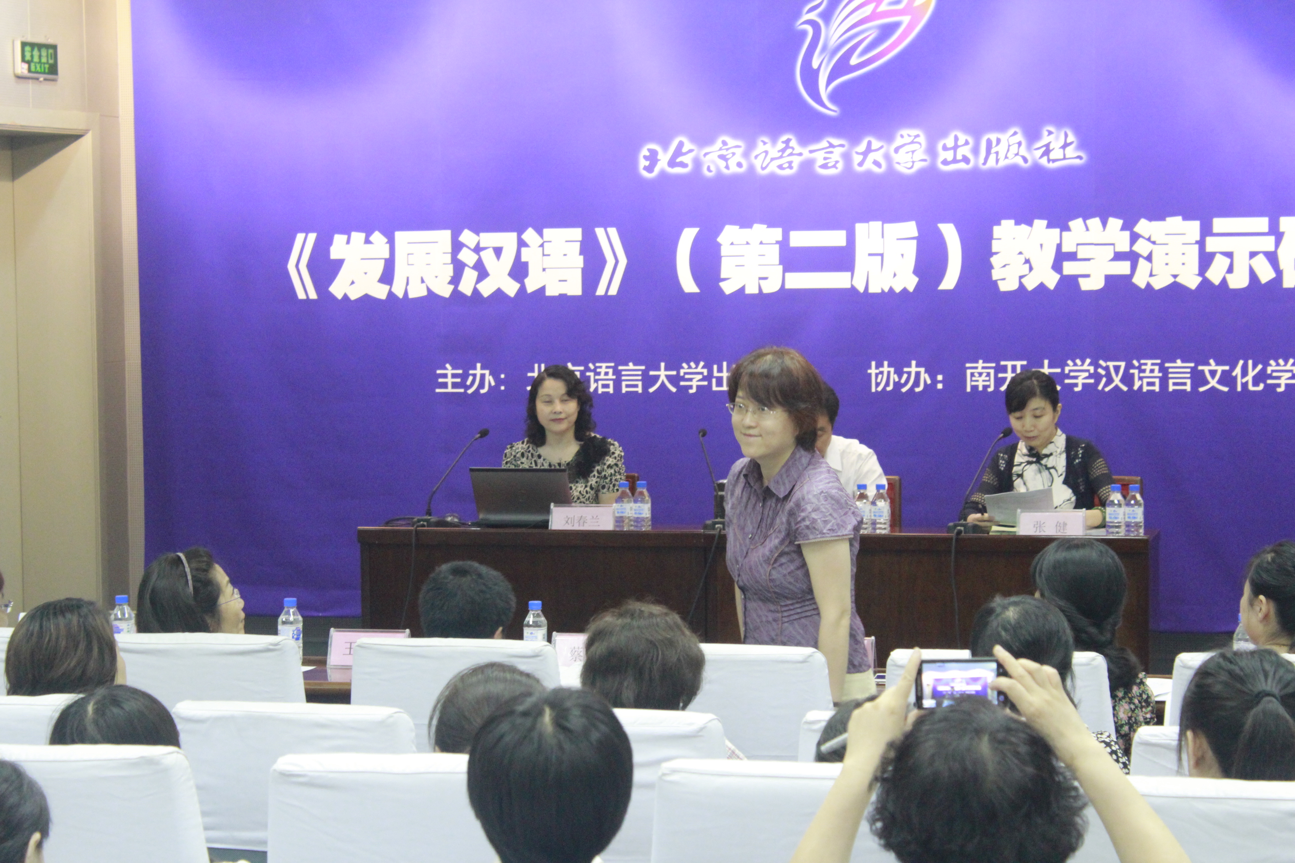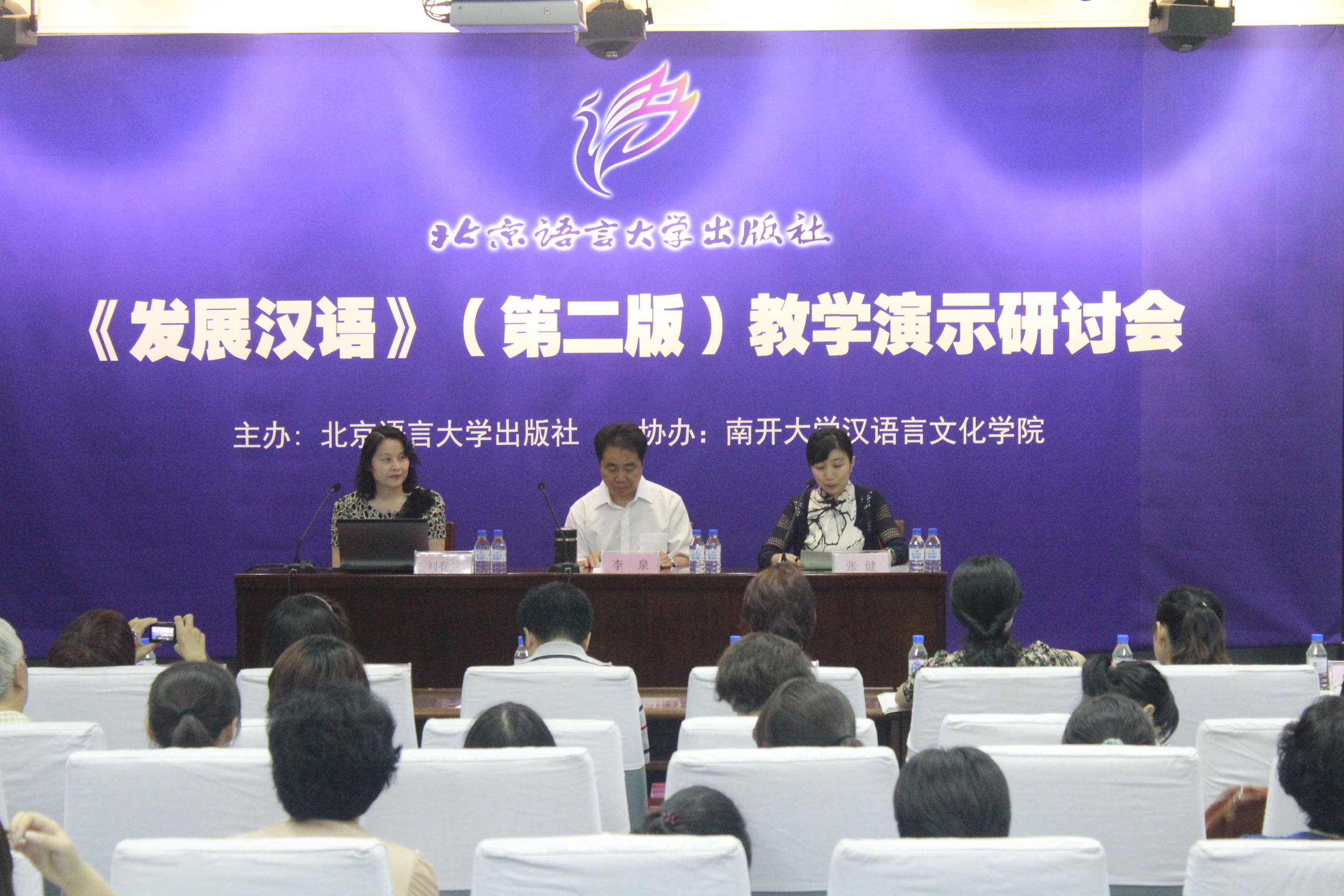 (通讯员 杨盼盼)6月29日,《发展汉语》(第二版)教学演示研讨会在我校生科楼报告厅成功举办。此次教学演示研讨会由北京语言大学出版社主办,色情免费 协办,天津市各高校的近80位老师应邀参加。 北京语言大学出版社总主编张健主持会议并介绍了莅临会议并将进行教学演示的各位老师,她对老师们的到来表示热烈欢迎,并对色情免费 的协作表示感谢。接着,色情免费 刘春兰副院长致辞。刘院长指出《发展汉语》的修订,使得这部以“发展”为核心理念的教材从编写理念到编写原则,从编写目标到内容、形式,都有了新的突破和提升,不仅体现了时代的精神,而且体现了精品意识,代表了汉语新教材的发展方向,是一部与时俱进的教材。她代表前来参会的老师们,感谢李泉教授率领的《发展汉语》(第二版)编写团队,感谢北语社为这部教材的出版和推广所做的专业化、创新性的工作。她说:“北语社通过教学演示研讨会在教材编写团队和一线的教材使用者之间搭起了一座桥梁,大家可以从不同的角度切入,分享各自的经验,这无疑是对汉语国际教育事业的重大贡献。参加会议的每一个人都会有所收获。” 研讨会分三个阶段进行。首先,《发展汉语》(第二版)主编、中国人民大学文学院李泉教授详细讲解了教材的编写与教学理念,并进行了精当的读写课教学演示。作为教材编写组的“领航者”,李泉教授对教材的介绍和讲解如数家珍、幽默风趣。他讲到,教材的设计与编写方法想要有新意,就必须有恰当、新颖的理论和理念的指导,具体说来,就是要坚持恰当、新颖的教学观、语言观、学生观、教法观、教材观。他举例说明了第二版教材对这些理念的坚持。李泉教授强调“语言学习是终生之事”,所以,《发展汉语》特别重视培养留学生的汉语学习兴趣和学习能力。 在李泉教授的精彩讲解之后,中国人民大学的幺书君、王淑红、蔡永强、傅由四位教师分别介绍并演示了自己负责编写的教材,此外,来自天津师范大学、中国民航管理干部学院、对外经济贸易大学、北京理工大学的四位优秀青年教师分享了她们关于教材使用及教学的宝贵经验。 教材介绍、教学演示、经验分享、专家点评、交流互动穿插进行、有机结合,让参会的老师和同学们对《发展汉语》(第二版)的理念与实践有了深入的了解,积累了更多有趣、实用的汉语教学经验,也加深了各个兄弟院校的联系与交流。