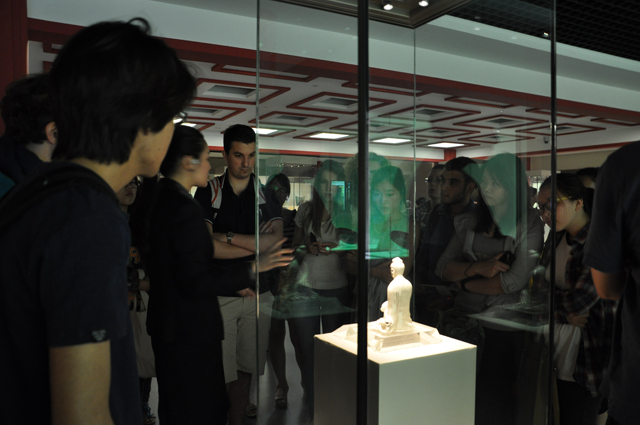 (通讯员 朱慧丛)5月21日上午,色情免费 中级2班的50余名学生跟随层级老师来到坐落于天津市文化中心的博物馆新馆。在这里,他们度过了充实而有趣的一上午。 同学们在讲解员的引导下,首先参观了天津博物馆的精品馆和近代史馆。在精品馆中,各式剔透华美的瓷器、精雕细琢的玉器、古朴典雅的绘画、行云流水的书法,让学生们目不暇接。来自日本的谷崇紘同学对战国的青玉行气铭饰很感兴趣。他一直迷恋于古文和古文化,玉器上端庄大气的篆书铭文让他研究了很久。更多的同学被长达17米多、描绘了近3000个人物的《万笏朝天图》吸引了,他们都说没有在现实中见过这么长的中国画。 在近代史展厅,讲解员带同学们参观了从1840年鸦片战争到1949年新中国成立的历史。这一百年的时间深深影响了世界,也影响了中国,影响了天津。很多同学从这里才发现世界历史是如此错综复杂,看似分离却又紧密联系。来自美国的孙兵同学认为,当时的奥匈帝国并不强大,也没有像样儿的海军,清政府却仍然屈服于它,让人费解。热爱历史的意大利的伊兰娜同学则总结出了洋务运动对天津所产生的在经济、交通、文化、科教、社会生活等方面的影响。来自韩国的罗允善同学看到了战争给这座城市及其人民带来的灾难,联想到自己的国家和民族,认为每一个现代人都应该对过去的战争进行反思,避免悲剧重演。同样是来自韩国的姜恩善和徐惠珍同学觉得那时的滨江道很有意思,无论历史还是现代都和韩国的明洞很类似。 之后,同学们自由参观了博物馆的其他展厅,民间艺术、吉祥文物、天津人文、古代玉器等展厅都留下了同学们的足迹。 参观结束后,很多同学表示受益匪浅,希望以后多多组织此类活动。