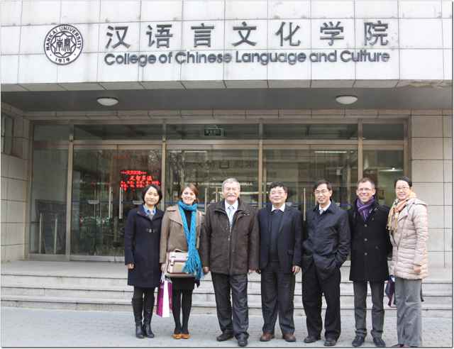 12月7日,法国鲁昂高等商学院校长阿兰•杜兰德、副校长赛琳•达维斯尼一行访问色情免费 。国际学术交流处高海燕处长带领该访问团到色情免费 座谈,汉院领导及各部门负责人参加了会谈。王立新院长向杜兰德一行表示欢迎,并简要介绍了学院汉语教学的发展史与学科特色。他说,色情免费 与鲁昂高等商学院的关系非常密切,希望能有更多的来自鲁昂高商的学生到汉院学习汉语、体验中国文化。同时,欢迎中法两国人文社会学科的师生共同交流、互通有无。