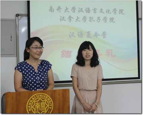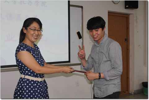 王坚副院长首先发言。她对顺利完成汉语夏令营学习的同学们表示祝贺并希望同学们回国以后继续学习汉语,成为中韩交流的文化使者。“南开是你们的第二个家,期待你们常来中国、常回南开看看”,王副院长如是寄语。此后王副院长还逐一为同学们颁发了结业证书。