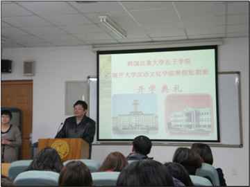 最后,将在本次短期班期间任课的刘佳老师对同学们表示了热烈的欢迎。她强调,本届短期班的同学将在中国度过传统的新春佳节,这必将深化同学们对中华文化的认识和对中国人文气息的感受。她本人在教学过程中一定会竭尽全力,使同学们能有实实在在的收获。在温暖亲切的氛围中,本次开学典礼圆满结束。