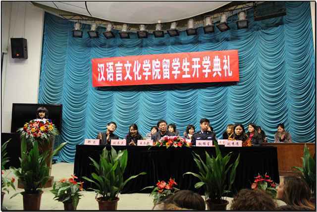 国际学术交流处留学生科科长刘秀清等出席开学典礼;留学进修生全体任课老师与班导师列席会议,全体300多名留学进修生参加了此次典礼。