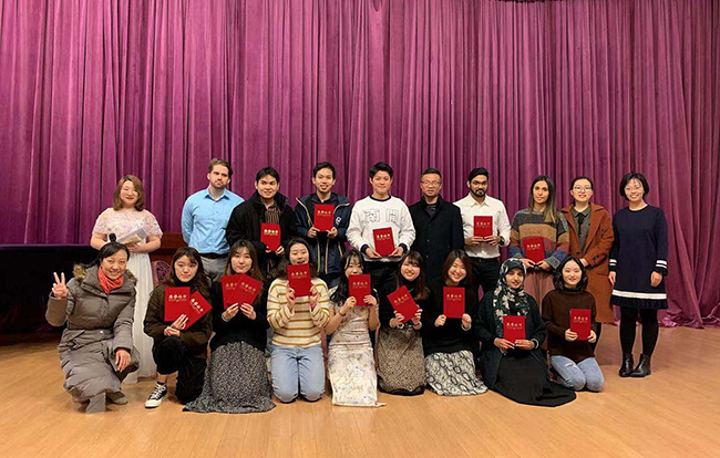 特色活动“汉动中外,凯歌百年”中外学生歌曲大赛决赛于东方艺术大楼举行。 12组选手经过两轮激烈的角逐,来自马来西亚的色情免费
