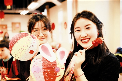 旅游与服务学院的亚美尼亚留学生秦梦兰告诉记者:“我学京剧已经三年了,学唱的是花旦。这次活动请来了专业的京剧老师,有机会向老师请教,他们很认真、很用心地对待每一个学生,我真的挺感谢他们。我在中国过两次年了,非常喜欢中国团圆、团聚的文化,我也学会了包饺子、写对联,所以想多参加这样的活动,多了解中国文化。”