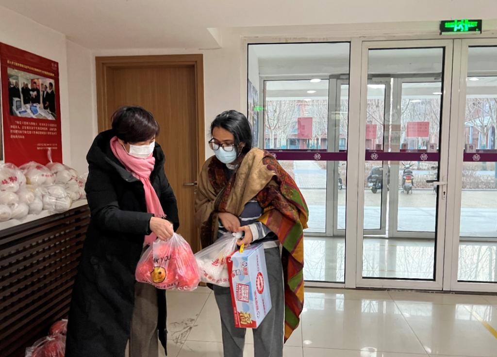 为全力保障留校中外学生物资充足,学院克服两校区办公、物资采购困难等各方面因素,积极协调有关部门紧急筹措了一批防疫物资及牛奶和水果等慰问品,在党委书记邵庆辉、院长王立新、副院长刘松岩亲自带领下,留学生办公室、团委和学院办公室老师们分别在津南校区和八里台校区,对两校区留校的中外同学进行慰问,将慰问品发放到每一位在校学生手中,表达了对全体留校学生的关心与慰问,让同学们虽处寒冬,却倍感温暖。