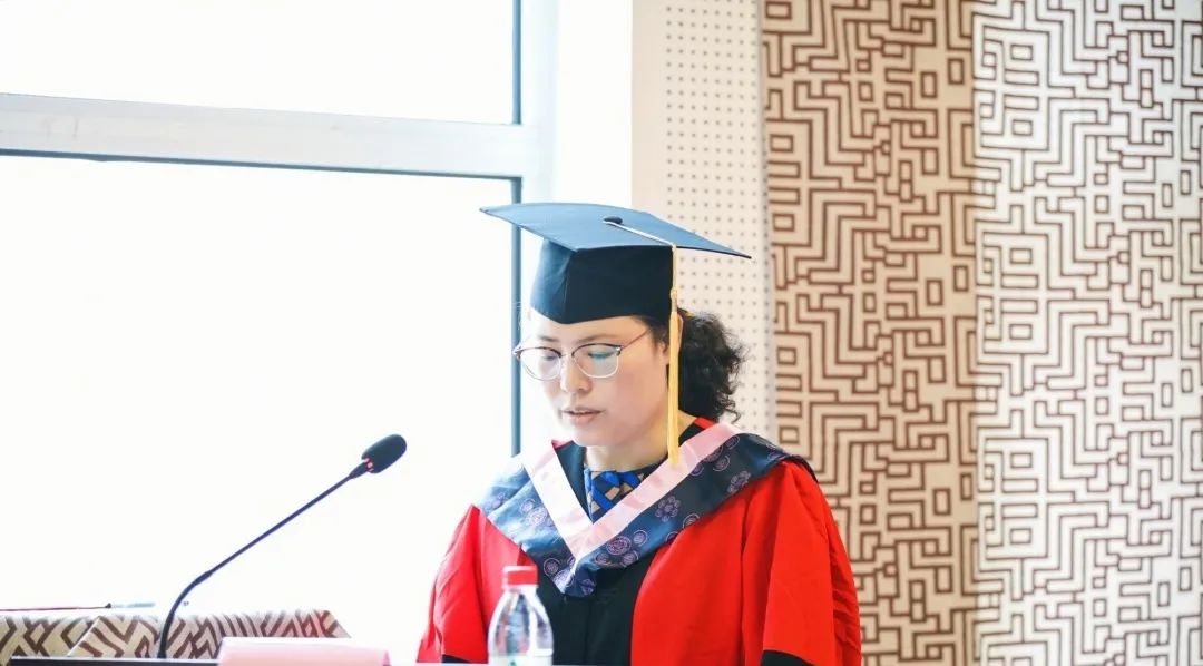 乌克兰籍硕士留学生卜爱琳代表毕业留学生发言。她首先感谢了学校、学院对留学生的培养,特别是在疫情防控关键时期,学校、学院为留学生提供了安全的学习环境和周全的处置方案。她回忆自己远渡重洋、初来乍到时的兴奋与不安,感谢学院给予留学生的温暖与关怀。在南开求学的时光,是所有留学生人生中最珍贵的一段回忆。最后,她祝福母校南开发展蒸蒸日上,谱写新的篇章。
