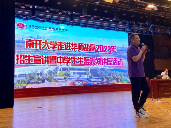 副教授王红厂、党委专职组织员王居尚等赴江苏省华东师范大学盐城高级中学开展2023年本科招生宣讲暨中学生生涯规划讲座活动。华东师范大学盐城高级中学全体新高三学生参加。华东师范大学盐城高级中学副校长任登宏出席并致欢迎辞。