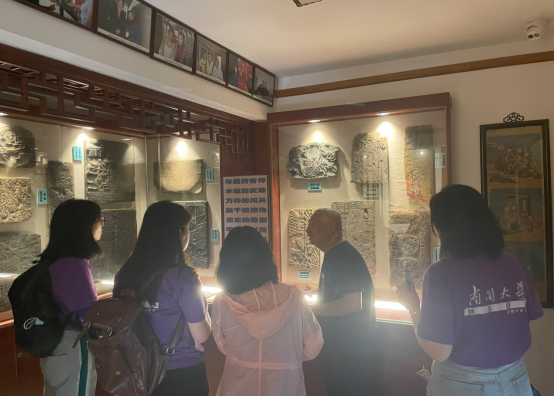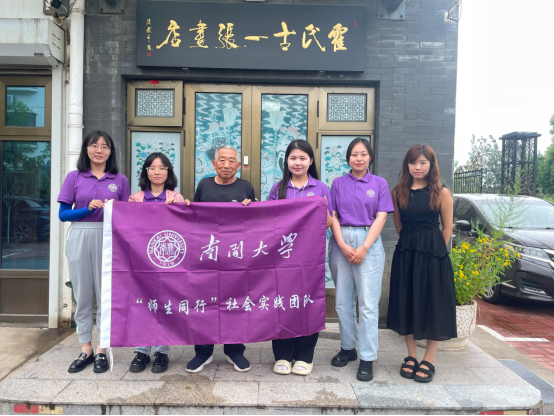 做好“非遗”保护工作、发挥文化引领功能是城市扩大国际文化影响力和辐射力的有效途径。经前期调查研究,实践队选取国家级非物质文化遗产“杨柳青木板年画”作为考察对象,实地探访天津杨柳青古镇年画馆,走进“霍庆有年画博物馆”,与杨柳青年画国家级代表性传承人霍庆有进行采访交流。霍庆有老师介绍了年画的兴衰演变、制作技艺,并指出杨柳青年画融合了国画、版画、工笔画、写意等绘画艺术元素,笔法细腻,色彩绚丽,题材广泛。融合众家,博采众长的艺术特点和天津开放包容的城市特点相互呼应。通过传承人的努力,曾经日渐凋落的年画艺术在新时代焕发出新的活力与光彩,并代代传承创新。霍老师回顾其赴西班牙、德国、英国、日本、俄罗斯等国家的文化交流经历,讲述交流过程,同时表达了中国艺术家的爱国精神。