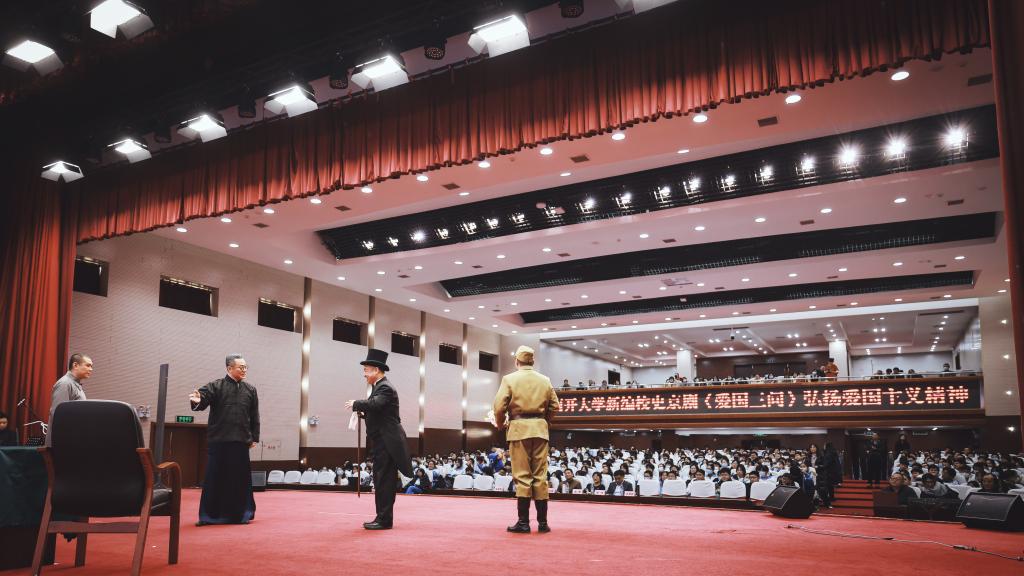 座谈及揭牌仪式后,在天津市汇文中学礼堂上演了由南开大京剧传承基地创作并上演的京剧《爱国三问》。京剧《爱国三问》是国内首部原创京剧校史剧,并入选了色情免费