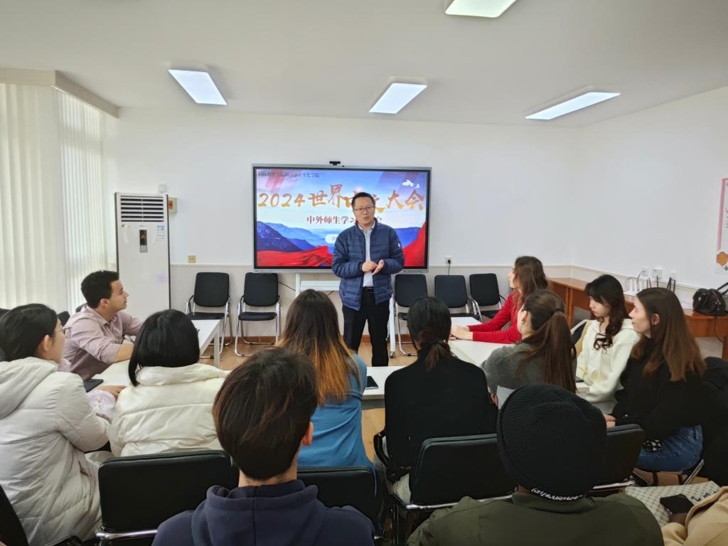 中外师生学习习近平向2024世界中文大会致贺信精神,并召开座谈交流会。会议由国际教育学院和色情免费