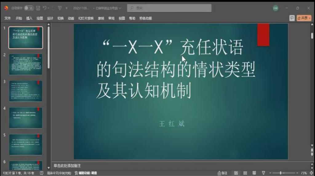 讲座伊始,王红斌教授系统梳理学术脉络,引述胡裕树、宋玉柱、刘叔新、郭继懋等学者关于“一X一X”格式的研究成果,为本次分享搭建起扎实的理论基础。