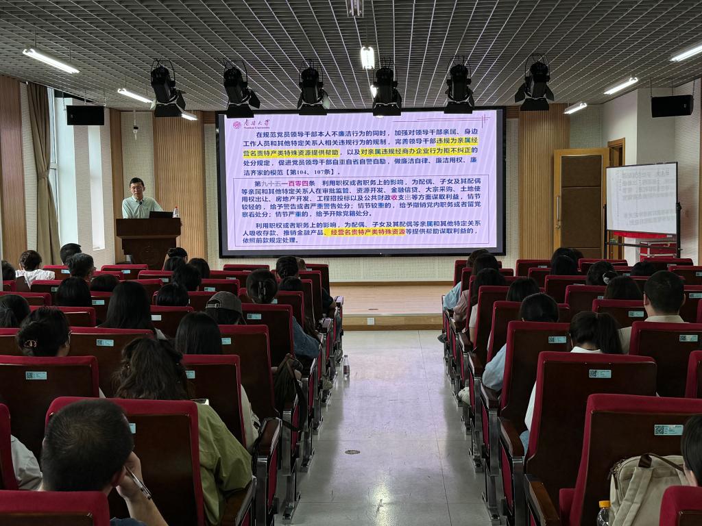 党委邀请学校纪检监察机构综合业务室主任任子雄为学院全体师生党员开展党纪学习教育专题培训。学院党政领导班子全体成员、全院师生党员参加学习。