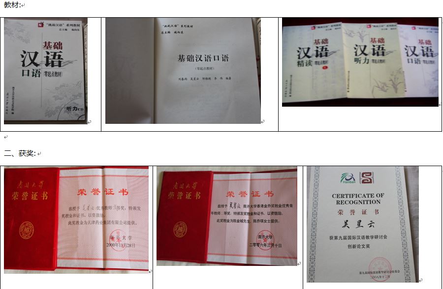 2008年 《美国大学华裔与非华裔学生汉语习得特点及其教学法探索》,第九届国际汉语教学研讨会“创新论文奖”