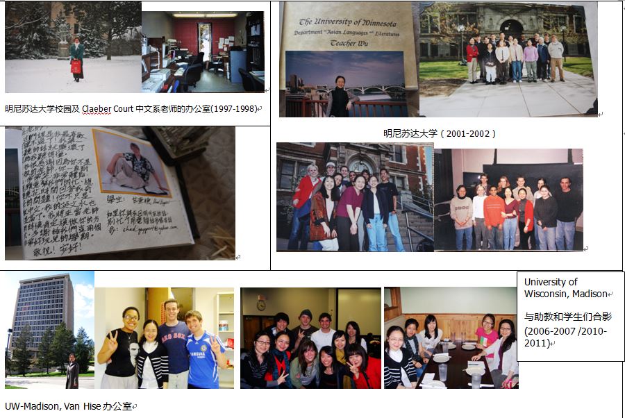 1997-1998年、2001-2002年,作为访问学者在美国明尼苏达大学任教,接受美国中文教学培训,任二年级中文课程主任教师。
