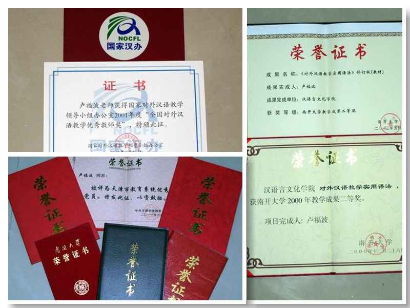 ⑸2002年 获国家汉办全国对外汉语教学优秀教师奖。